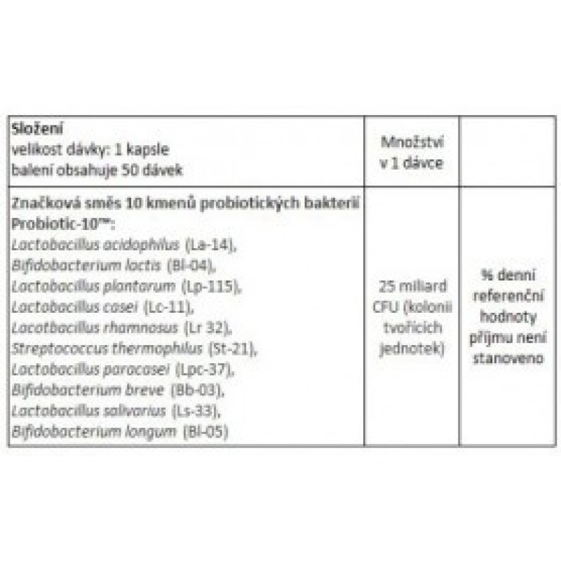 | Doziranje (medicinsko): | Obično 1-10 milijardi CFU (jedinica koje stvaraju kolonije) dnevno |